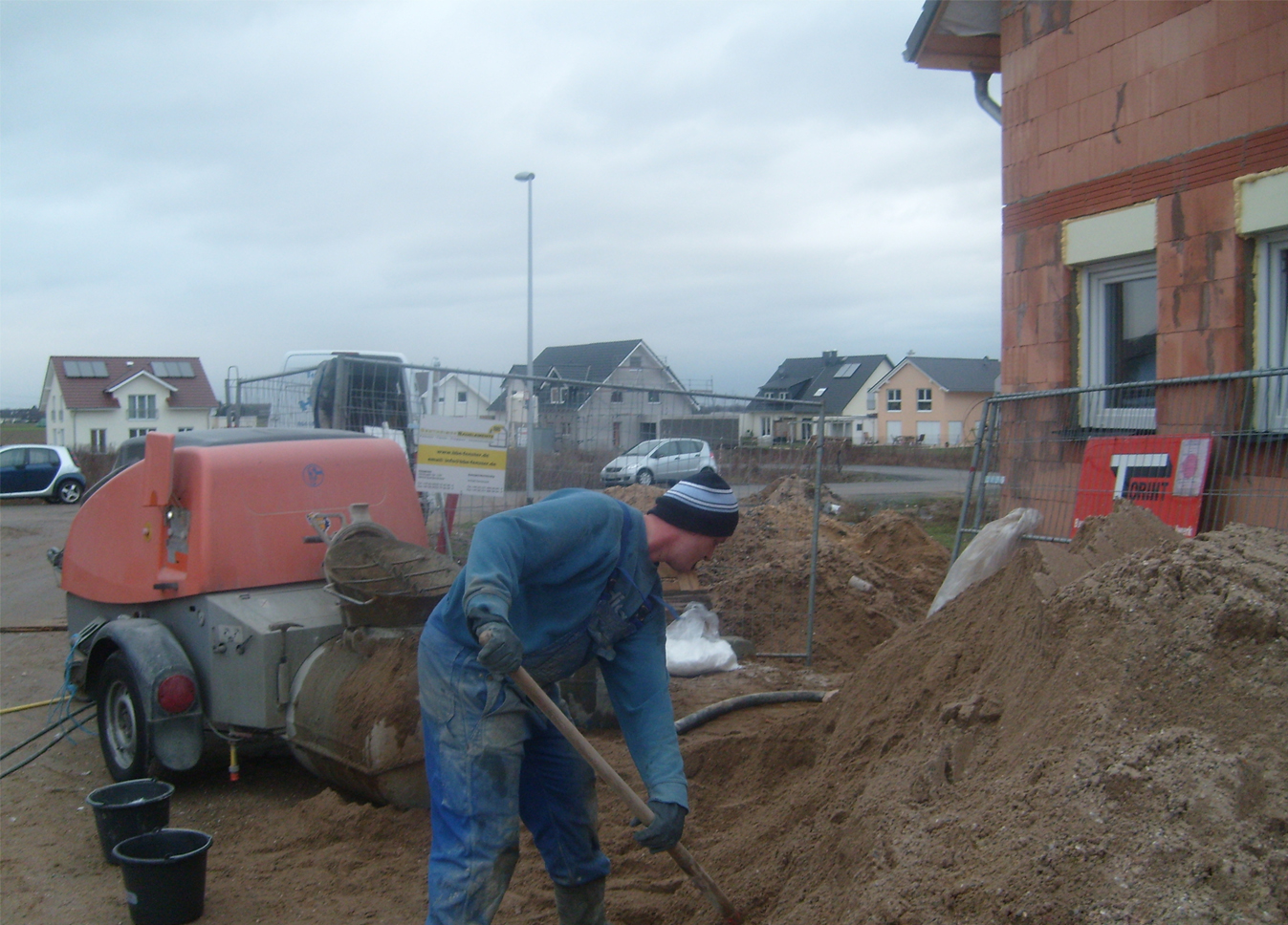 Unser Zementestrich wird direkt vor Ort angemischt und über einen Förderschlauch in die Baustelle gepumpt. So verkürzt sich Arbeitszeit und eine saubere Baustelle ist somit garantiert.