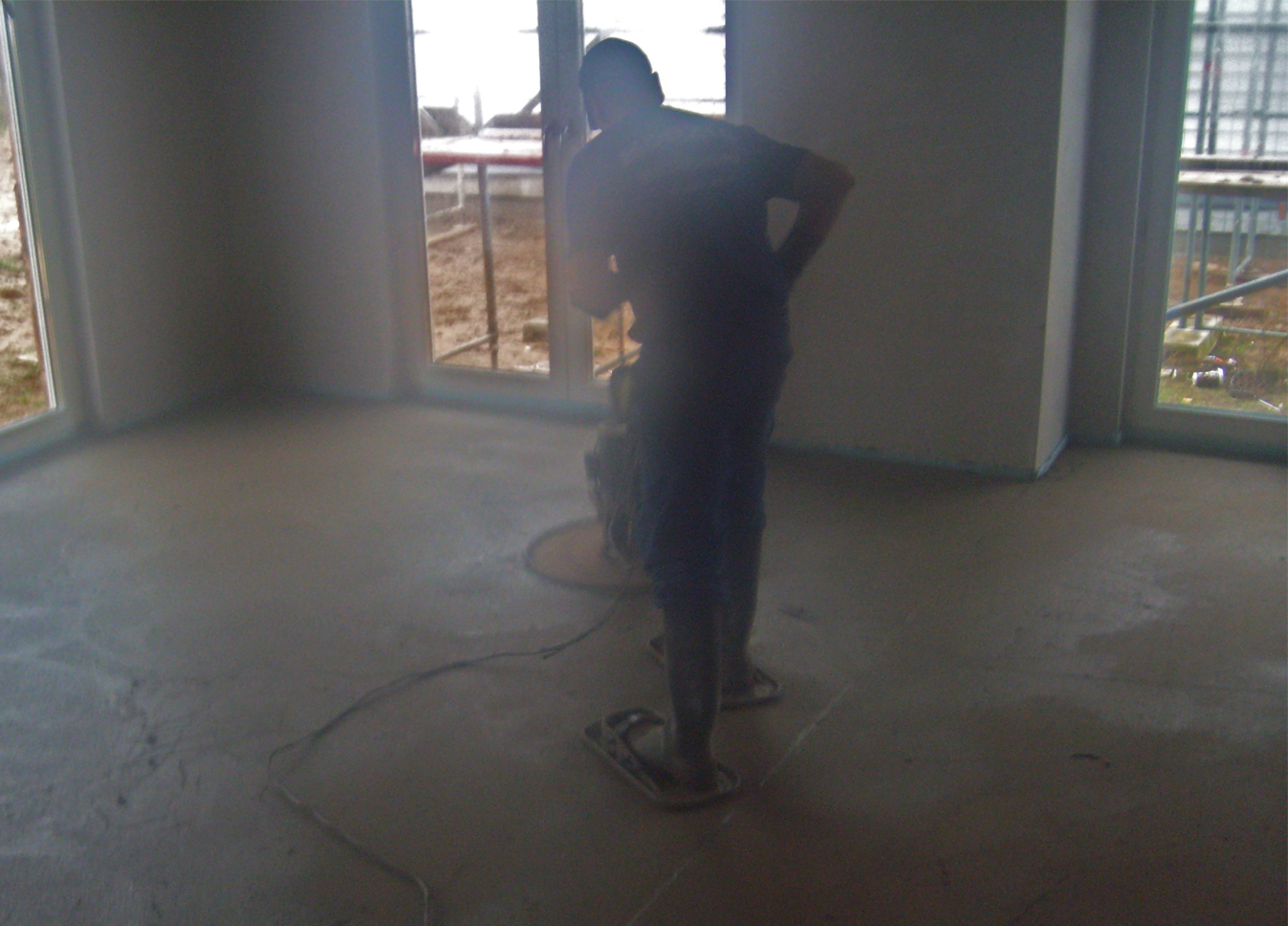 Alle unsere Estriche werden maschinell geglättet. Dadurch erhält man eine ebene, sehr harte Oberfläche ohne Sinterschicht.